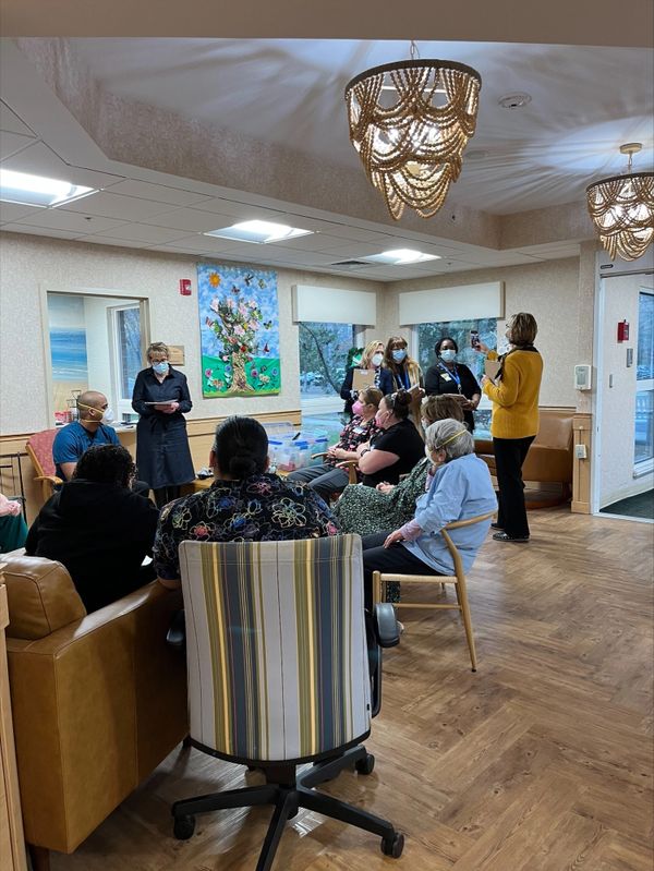 Pictured along with them are our residents Joyce and Nurhussein, our Social Worker Danielle and our Activities Director Dawn. Thank you again Cazz and Melissa-you brought lots of smiles to the faces of everyone in Pelican Pointe!